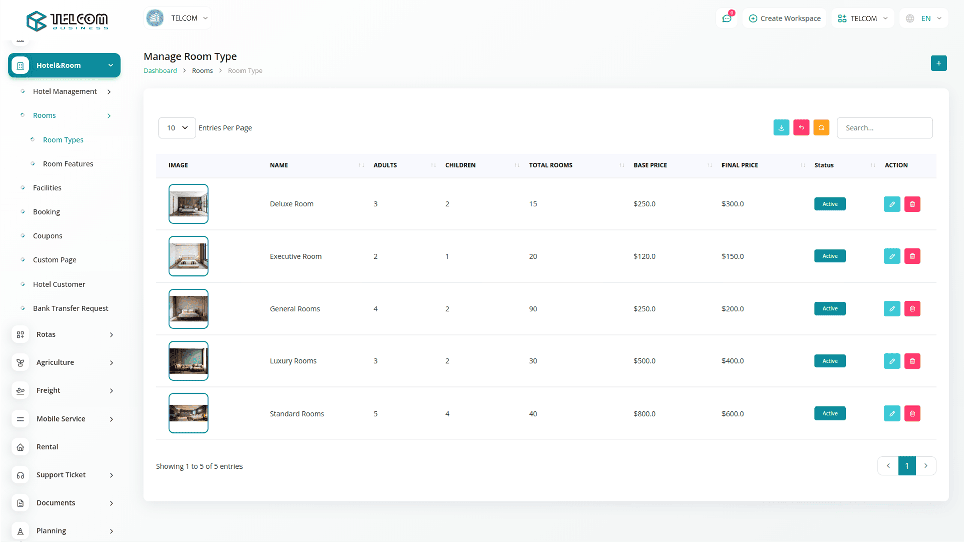 Независимо от того, управляете ли вы отелем, курортом или другим видом размещения, эта функциональная система поможет оптимизировать ваши операции. Вы легко сможете управлять типами номеров, их характеристиками, удобствами и бронированиями всего из одного интуитивно понятного интерфейса экосистемы TELCOM business.