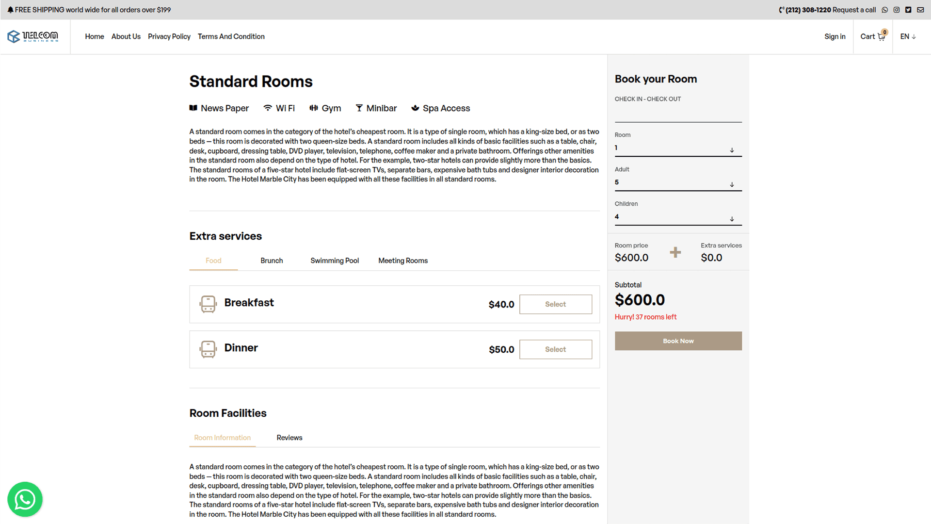 Сделайте процесс выбора и бронирования номера максимально простым для ваших гостей: выберите даты, нужный номер и нажмите «Забронировать». Легко и без лишних шагов!