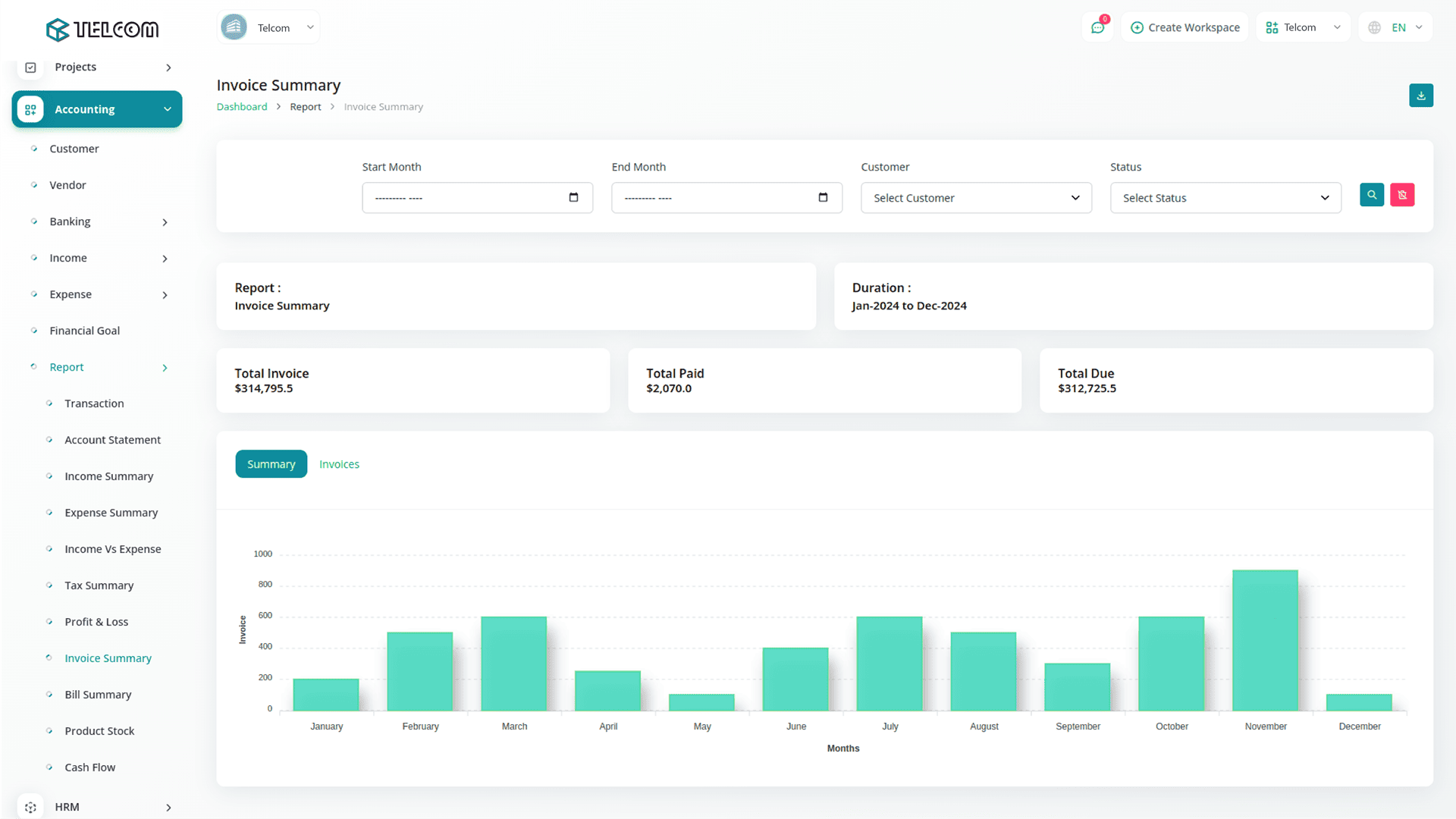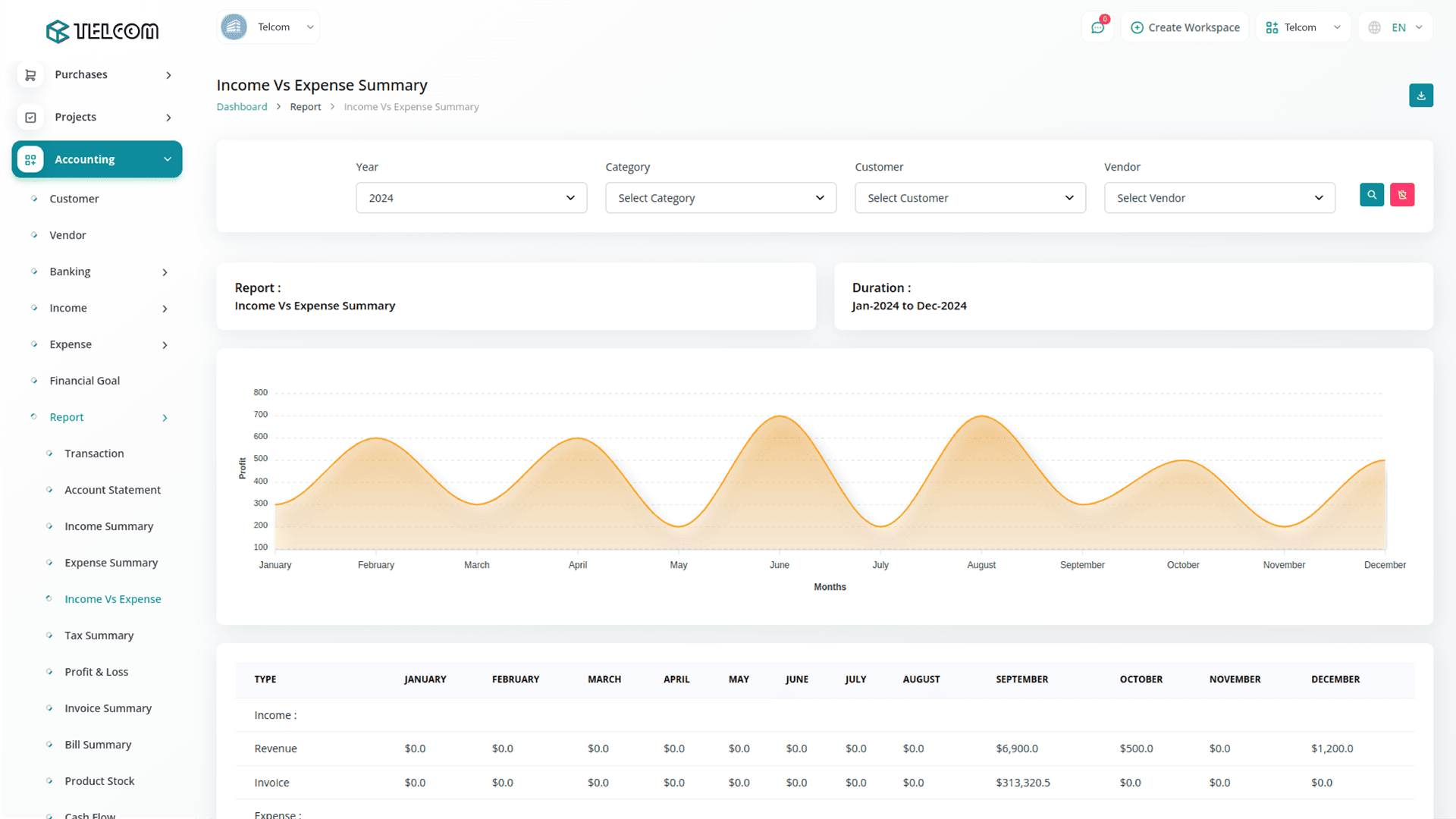 Отфильтруйте их по счету, категории и клиентам. Кроме того, графическое отображение диаграммы доходов и расходов, а также подробный расчет прибылей и убытков помогут вам принимать обоснованные решения.