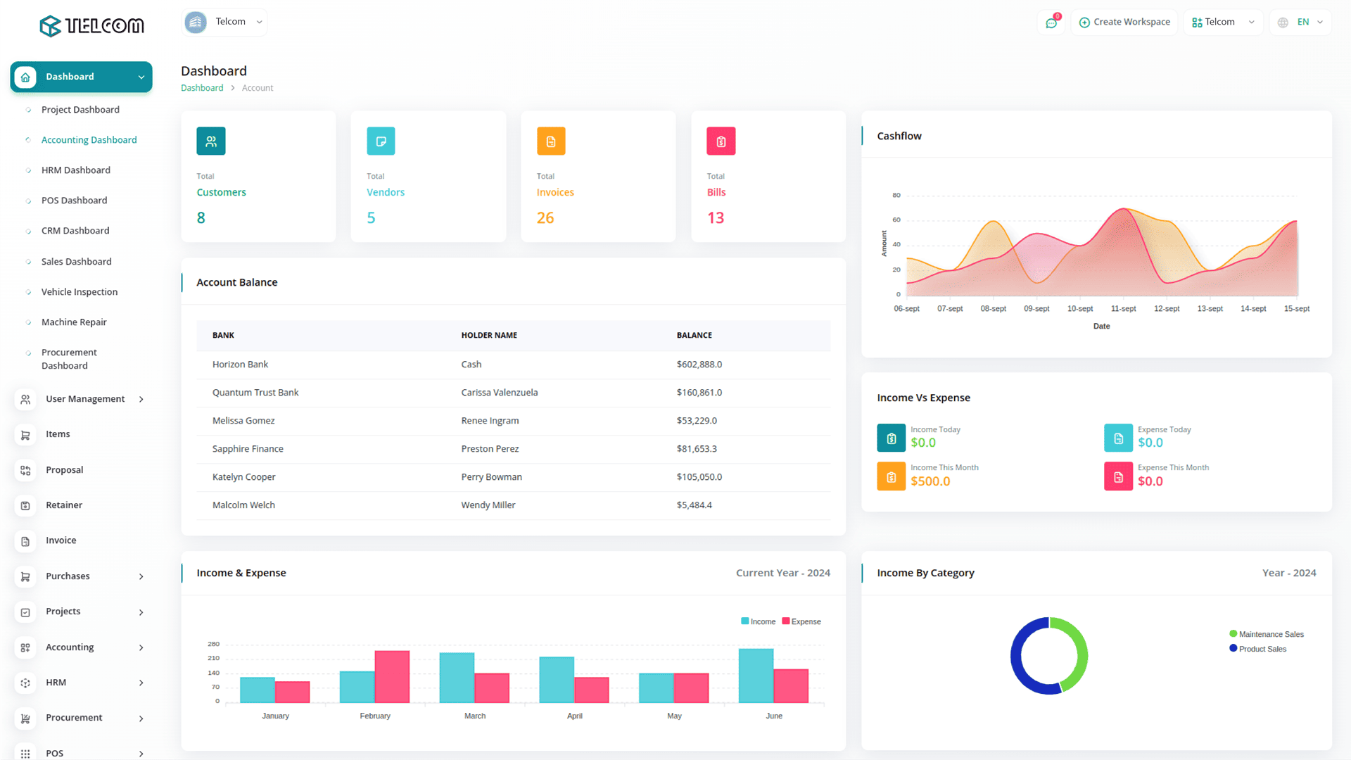 Account - это программное решение для управления финансового учета, которое облегчает расчет выручки, отслеживая все бухгалтерские вопросы бизнеса. Это приложение сделает ваши бизнес-операции плавными и удобными. Минимизируйте ручную работу с отчетами и получайте данные о финансовом состоянии компании в один клик. Графическое и табличное представление различных элементов поможет вам принимать обоснованные решения для вашей компании.