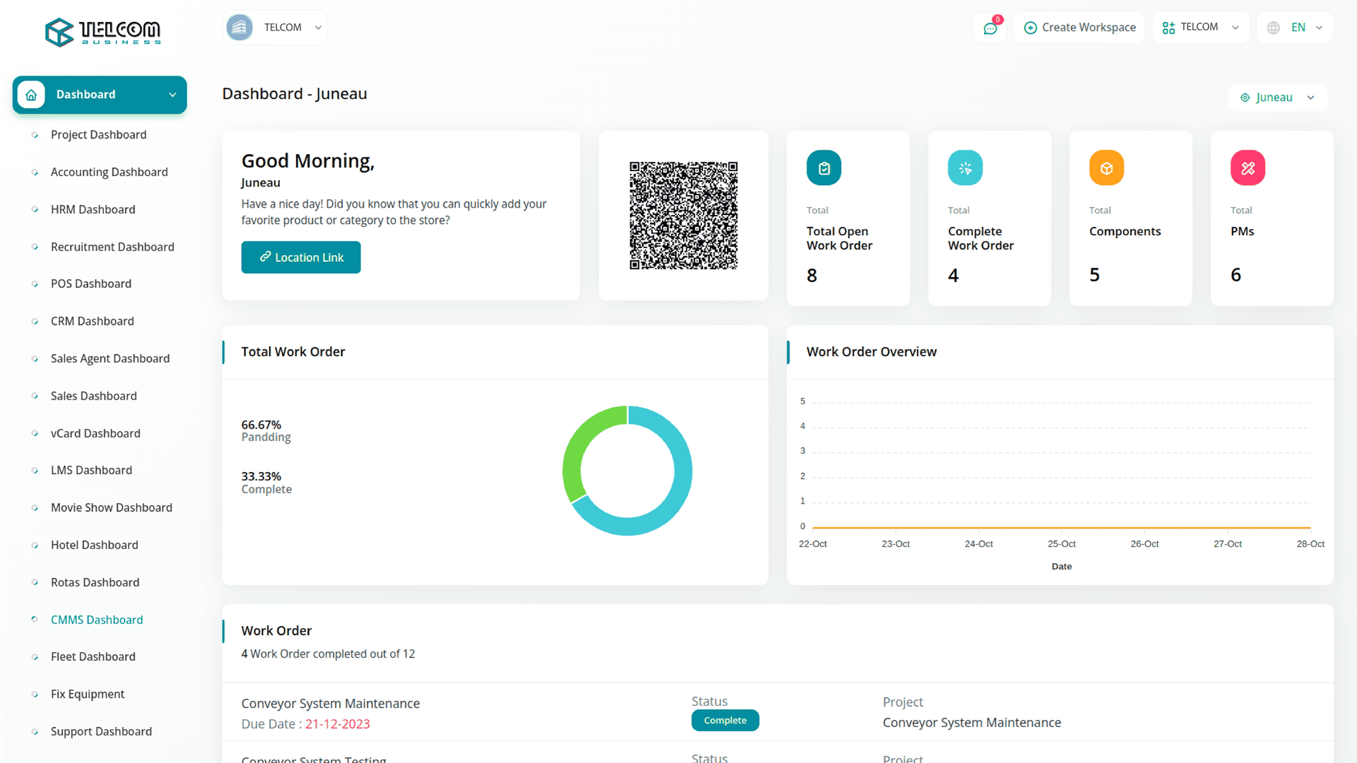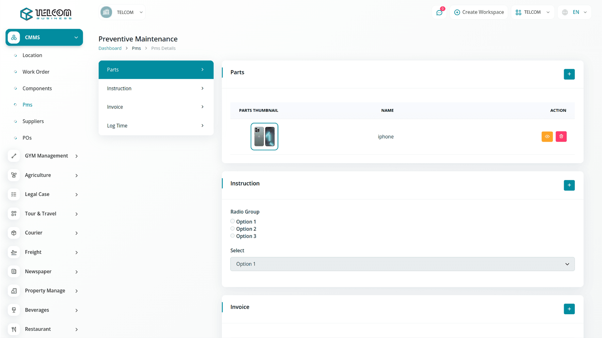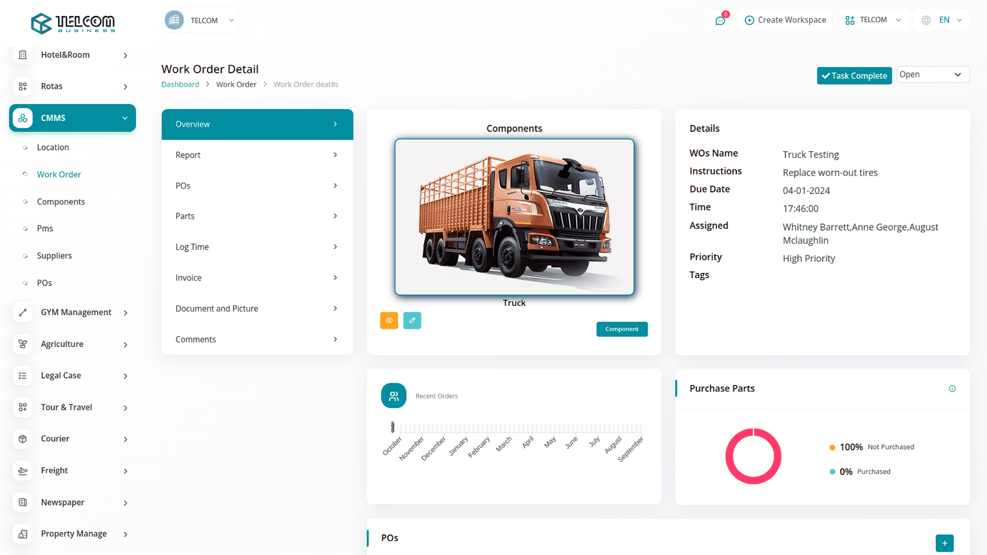 Программное решение "Полная система управления техническим обслуживанием", CMMS (Complete Maintenance Management System) - это ваше комплексное решение для эффективного управления закупками, продажами и техническим обслуживанием компонентов и комплектующих, а также для бесперебойной координации деятельности по аутсорсингу на различных рабочих местах.