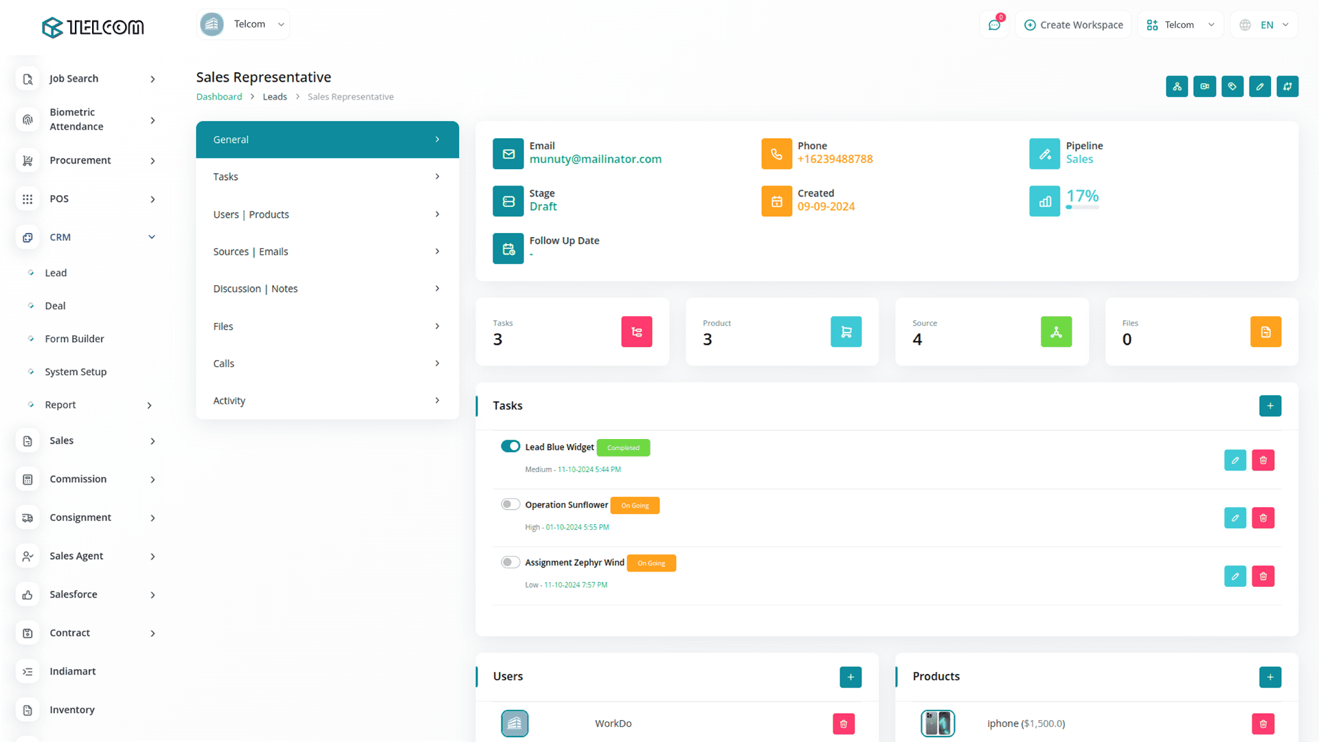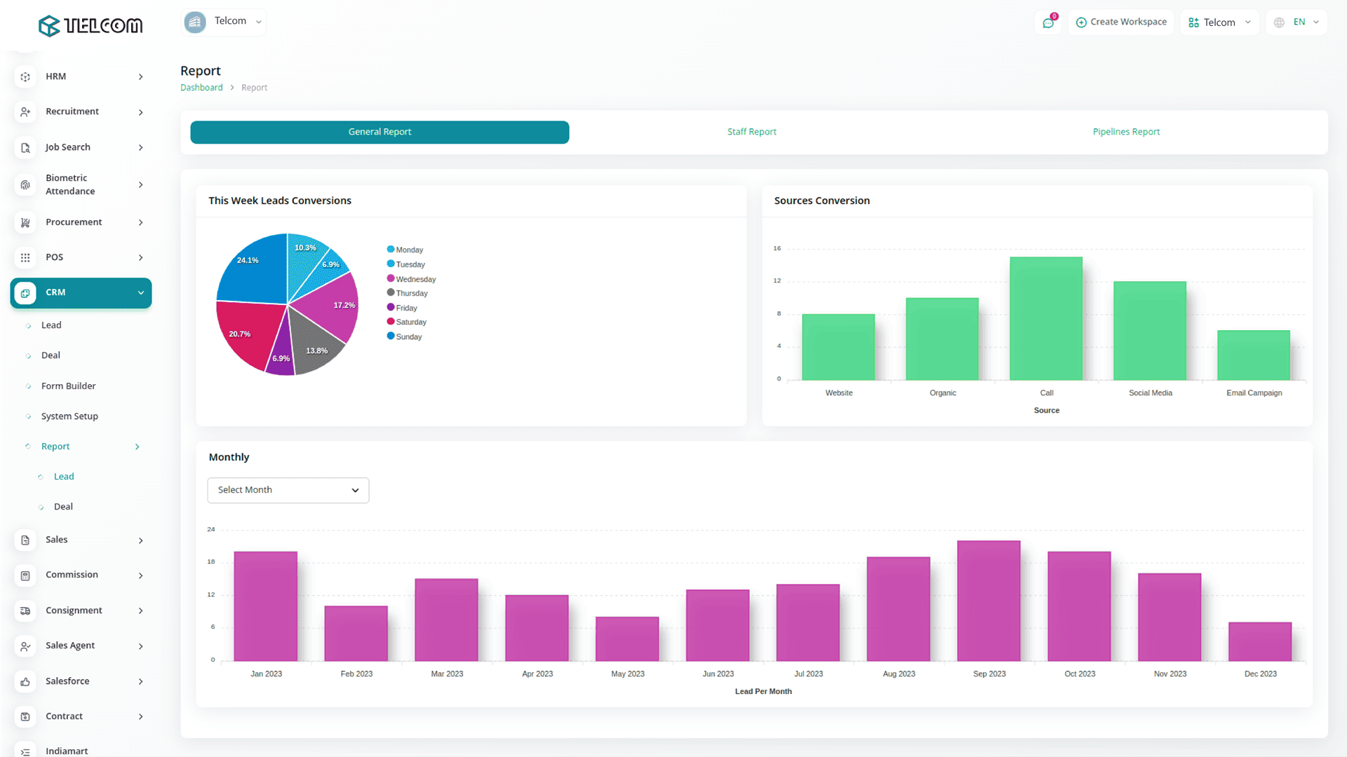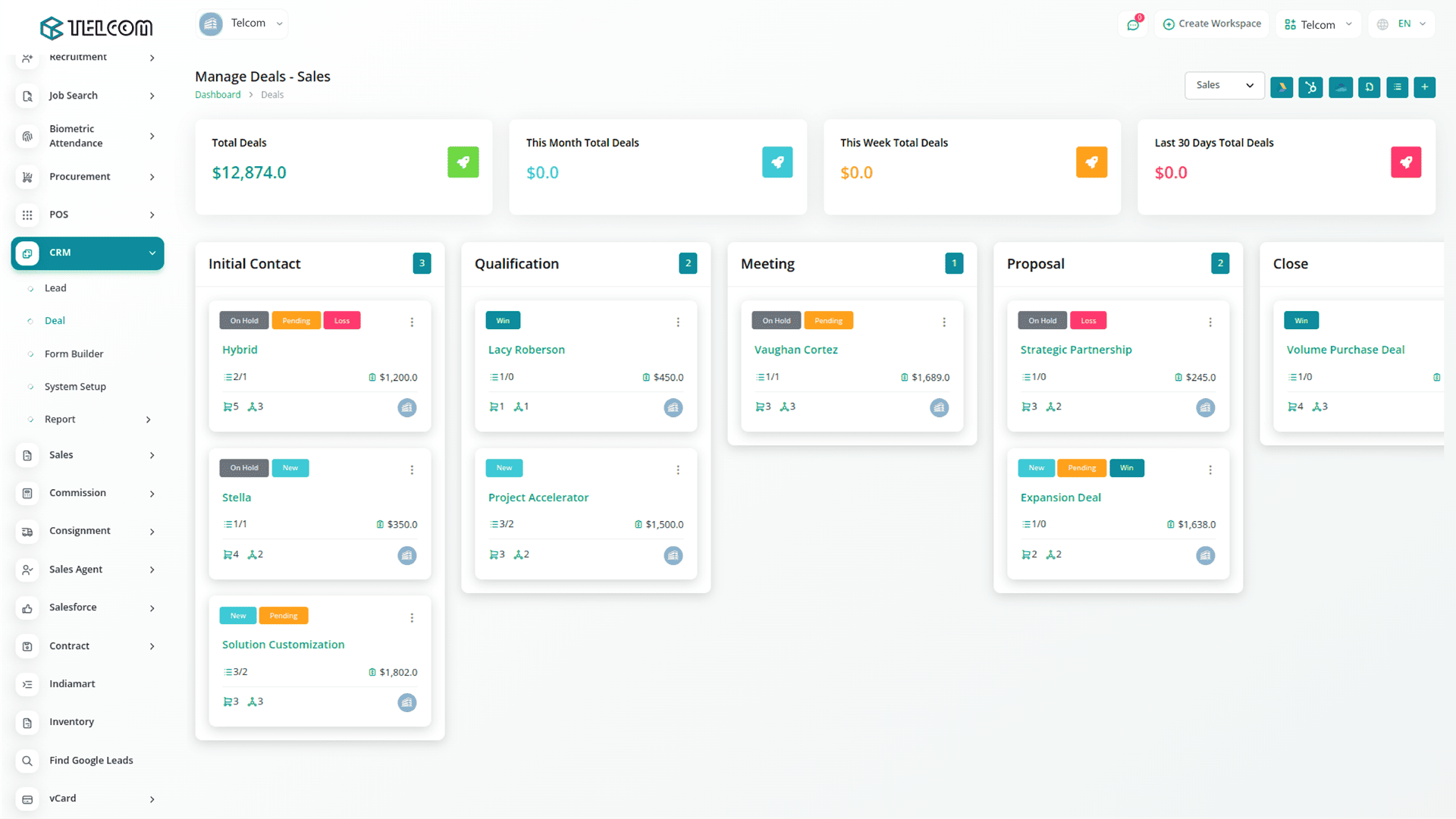 С помощью интуитивно понятного интерфейса можно легко оценить все аспекты вашего бизнеса. Генерируйте аналитические данные, которые помогут повысить эффективность продаж, и управляйте своими потенциальными клиентами и сделками с помощью простой системы перетаскивания канбан.