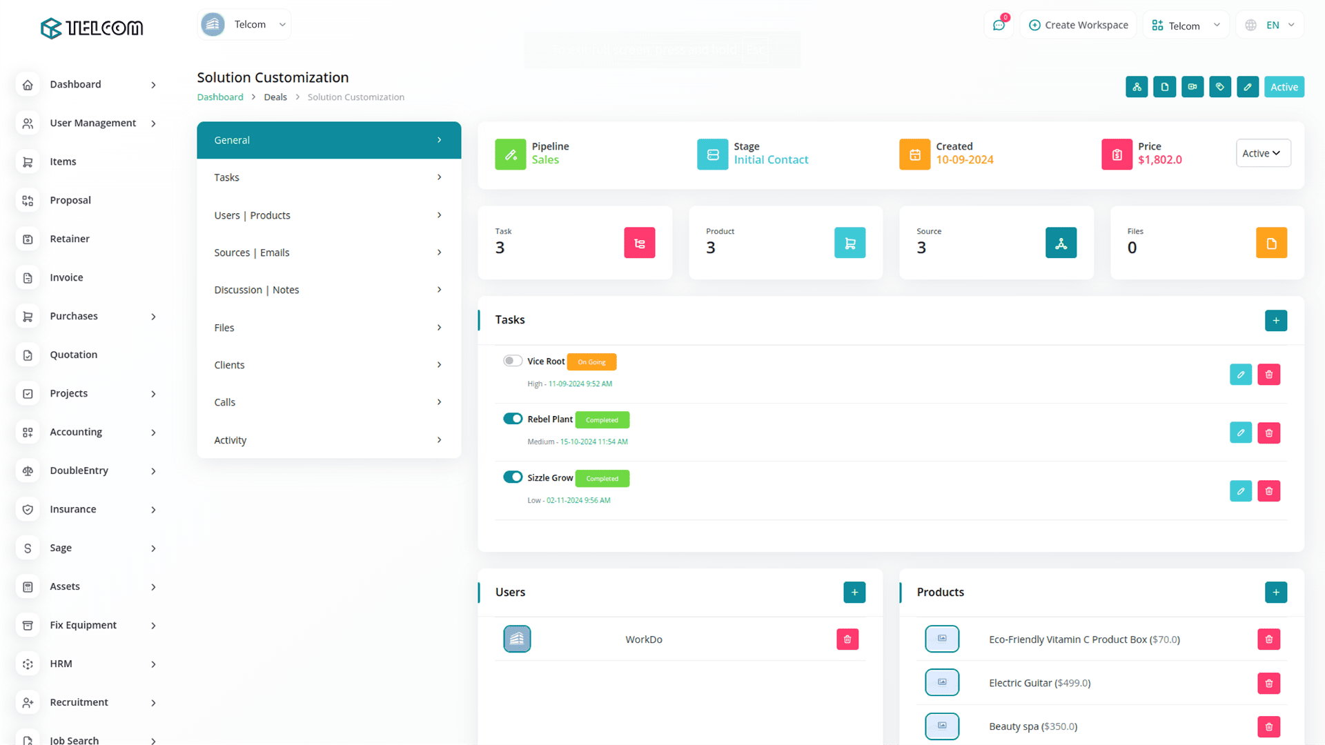 Получите оперативный анализ всех ваших потенциальных клиентов, сделок, пользователей, счетов и продуктов на одной интерактивной панели. Создавайте и внедряйте эффективные бизнес-планы, устанавливайте максимальное количество сделок, способы оплаты и многое другое.
