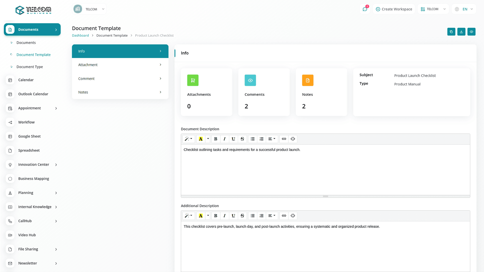 Бесшовная интеграция шаблонов документов с проектами. Держите ваши шаблоны документов в порядке и всегда под рукой с помощью удобных функций экосистемы TELCOM business.