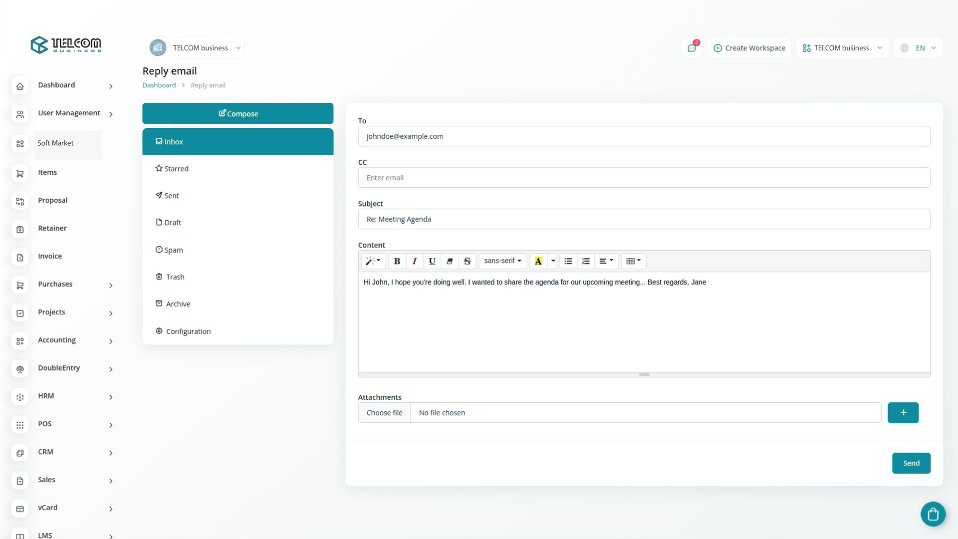Он легко интегрируется с вашим SMTP-сервером и предоставляет полный контроль над различными папками почтового аккаунта, включая «Входящие», «Черновики», «Спам», «Отправленные», «Корзину» и «Архив».
