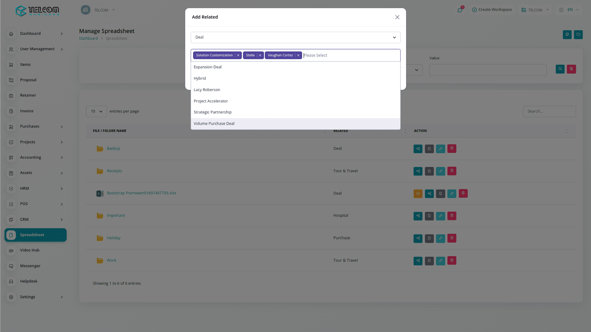 Вы можете создавать вложенные папки внутри основных папок и делиться ими с пользователями. Также возможно связывать различные программные решения - такие как проекты, лиды, сделки, контракты и другие - с этими папками для организации связанных данных.
